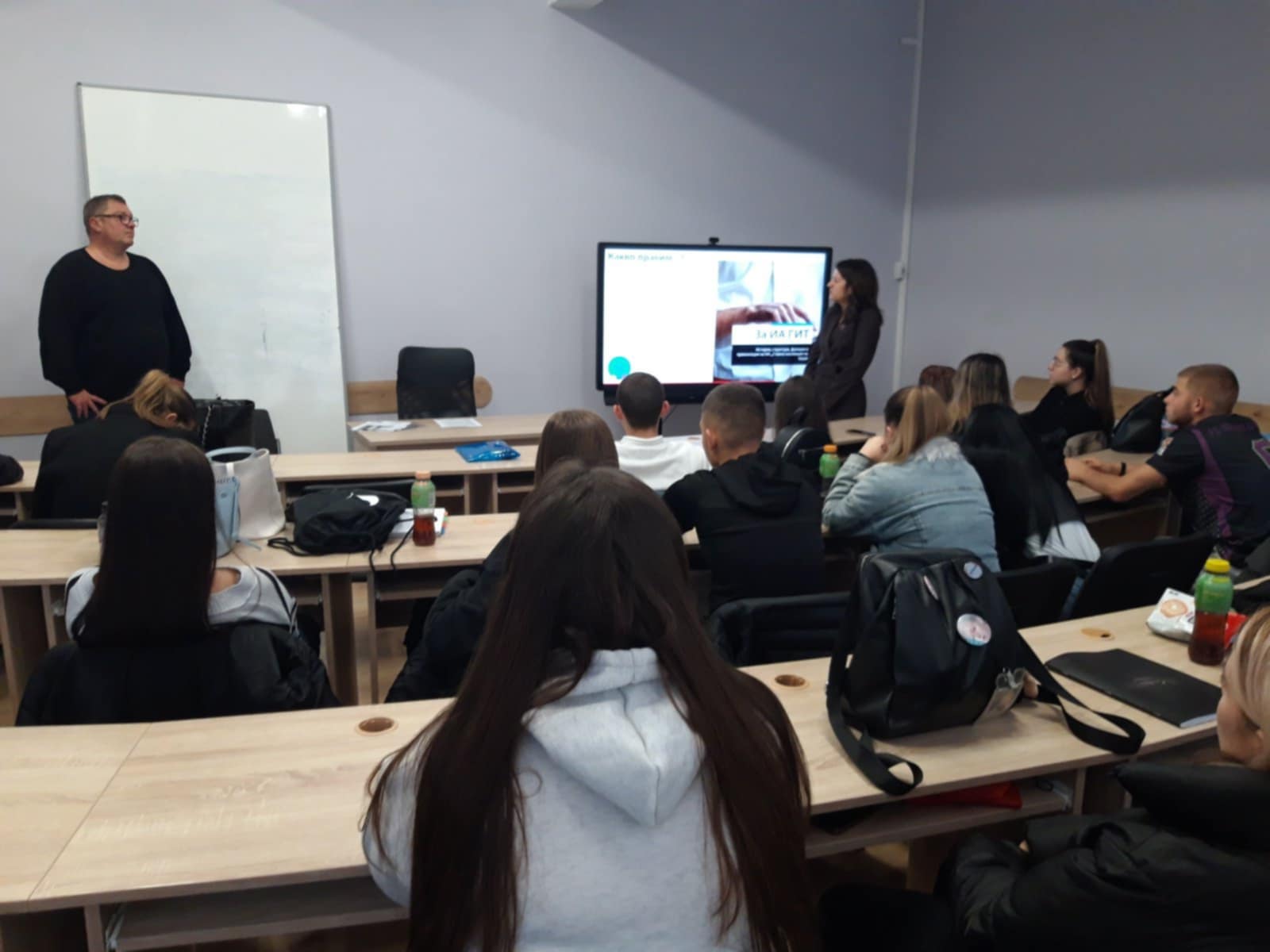 Акцент в програмата през първия ден от посещението бе среща с ученици от Софийската професионална гимназия „Княгиня Евдокия“, които се обучават в професионално направление „Съдебна администрация“. Учениците бяха запознати с трудовите им права и задължения при започване на първа работа, представени им бяха въпроси относно трудовата мобилност и добрите практики от дейността на България и Германия. Специално внимание по време на лекцията бе обърнато и върху спазване правилата за безопасна работа като начин за опазване на живота и здравето на работещите.