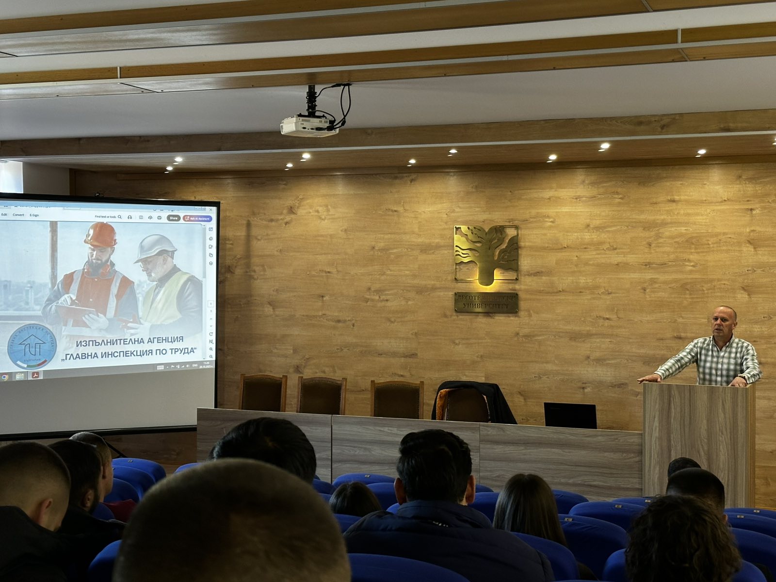 Едно от първите събития, посветени на кампанията, се проведе днес в Лесотехническия университет в град София. Лектор бе Георги Иванов от Главна дирекция „Инспектиране на труда“. В лекцията се включиха студенти и преподаватели, на които бяха представени правилата за безопасна работа, изискванията за провеждане на инструктажи, предоставянето на работно облекло и други. Важен фокус в информационното събитие бе превенцията на недекларирания труд - работата на трудов договор с ясно посочени в него условия на труд.